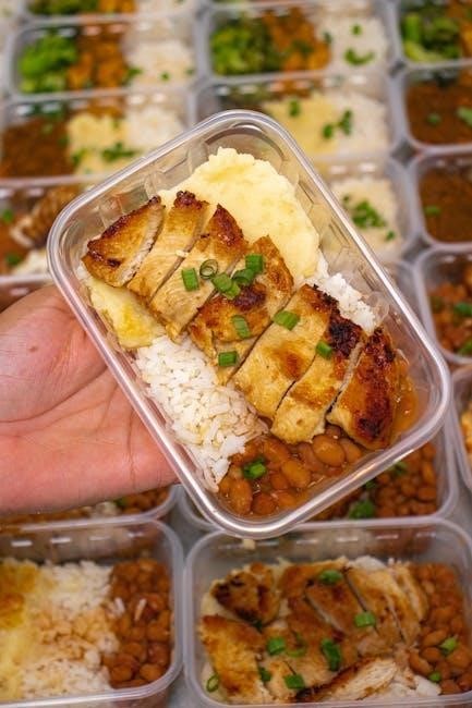 A well-structured meal plan is crucial for maintaining hormonal equilibrium. Start your day with a balanced breakfast, such as oatmeal with berries and nuts, to stabilize blood sugar. Include protein-rich meals like grilled chicken or fish, paired with whole grains and vegetables, to support hormone production. Incorporate healthy fats, such as avocado or olive oil, to aid in nutrient absorption. Snacks like Greek yogurt with almonds or fresh fruits can help keep energy levels steady. Avoid processed sugars and opt for natural sweeteners like raw honey. Stay hydrated with herbal teas or kombucha to support detoxification. By following this structured approach, you can maintain hormonal balance, improve energy levels, and enhance overall well-being. Meal prepping and variety are key to staying consistent and nourished throughout the 21-day plan.